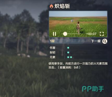 炽焰斩通过击败爆闪电守卫者之后解锁(同期解锁三个同级别战技),升级需消耗火元素碎片(矿洞采集)和战斗残页(日常任务)。优先升级燃烧持续时间和失衡值积累,中期再点伤害增幅。每周限购商店可兑换5个火元素碎片,建议优先兑换。