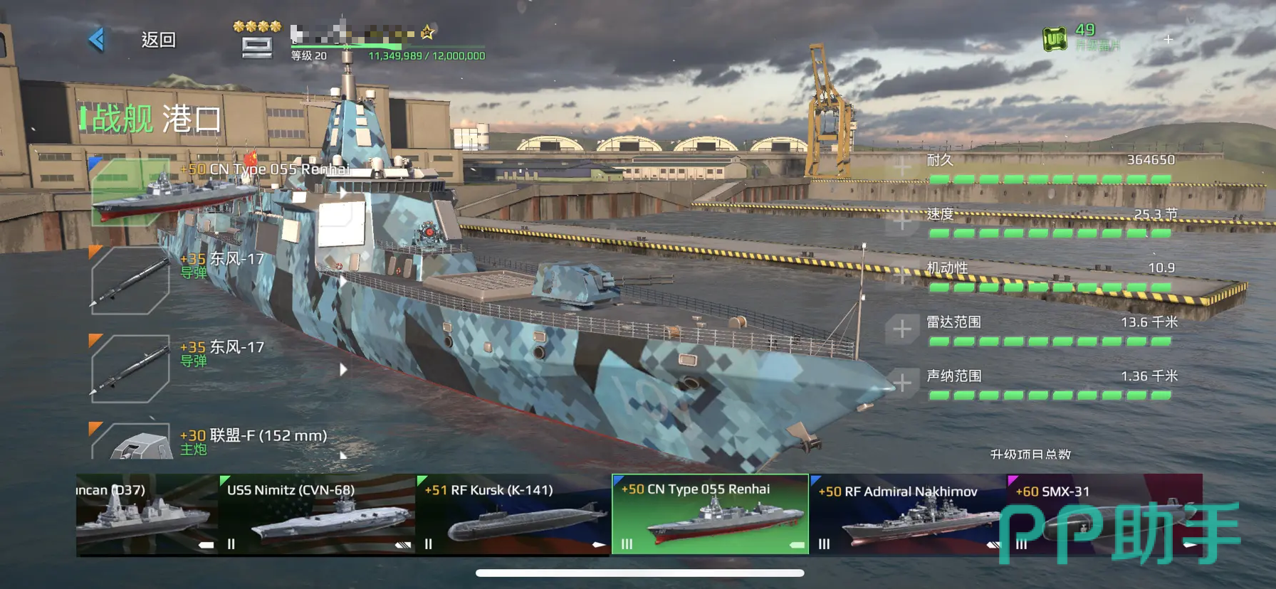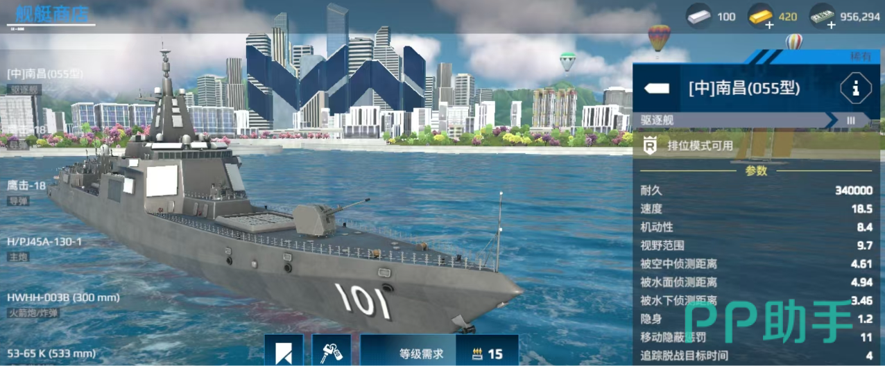 055型驱逐舰的全称其实叫做055南昌舰,在游戏中它的定价同样不高。被认为被认为是“平民神器”,性价比极高,只需要花费1000多万游戏币(美金)即可成功入手。相对于其他战舰来说,它的配置非常优越了。不仅有着灵活的机动性,而且火力也不差。