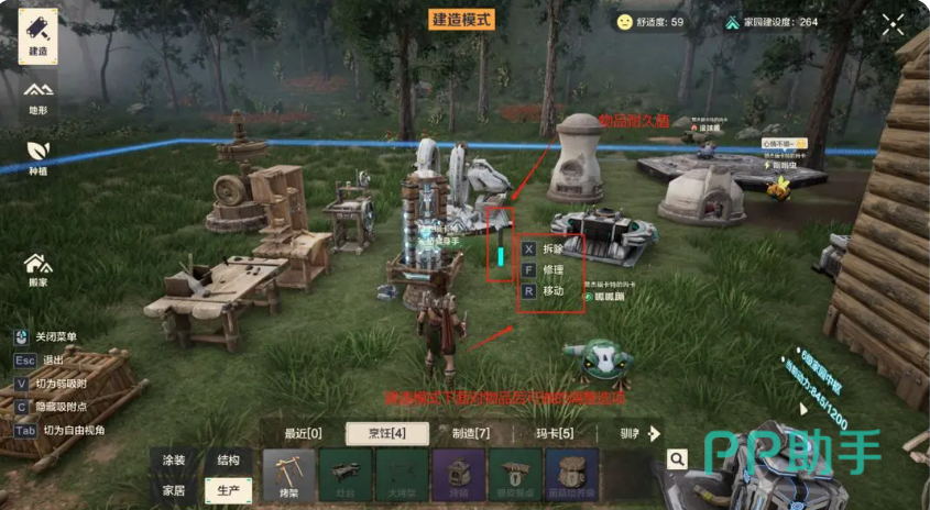 建造的建筑都是有耐久度的,即便是摆放好的建筑,也能去拆除,秀丽,移动的,地形功能之下,可以对家园的地形进行调整,比如平整功能,平整的地面才能摆放建筑物。