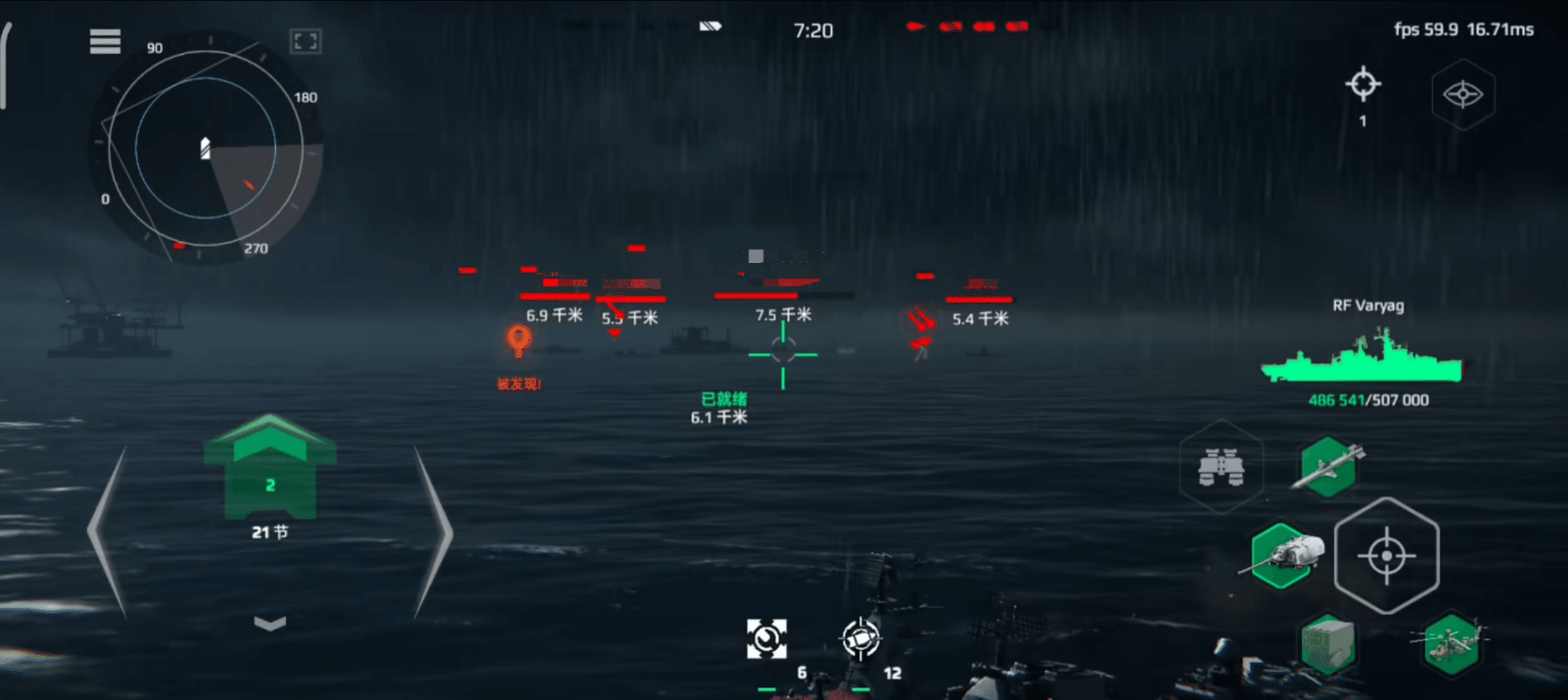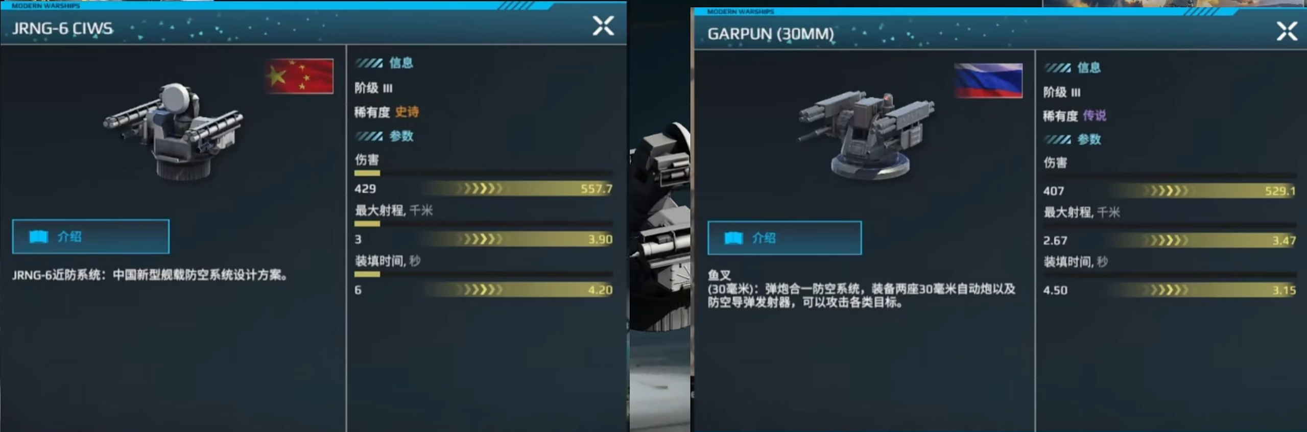 JRNG6在游戏中定位为“全能型防空武器”,其基础属性包括射程与射速,防空导弹最大拦截距离8公里,30毫米机炮有效射程3 里,射速高达 10000发/分钟。这种“远弹近炮”的配置,使其能在8公里内形成多层防御网。拦截效率方面对反舰导弹的拦截率超过80%,对低速战机的命中率可达90%以上。其复合制导模式使其在对抗热诱弹干扰时仍能保持较高成功率。每座JRNG6配备16枚防空导弹和2000发机炮弹药,可同时应对多波次攻击。其机炮对鱼雷也有一定拦截能力,可弥补反潜火力不足的短板。