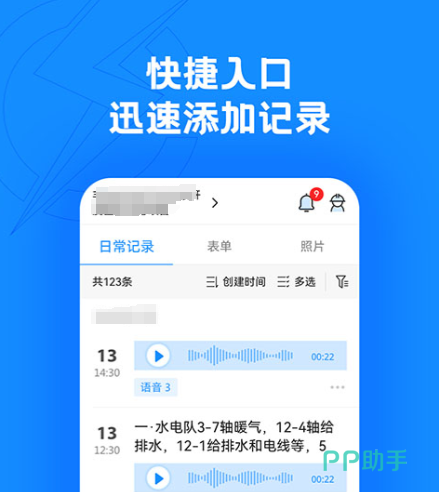 这款软件聚焦于工程项目的管理,可以通过多样化的形式去快捷记录,语音、文字、拍照都支持,从此告别繁琐低速的手写记录。可将现场记录自动转化为日志,水印相机功能支持添加时间、地点、项目名称等信息,可通过数据共享实时掌握关键各个项目的信息。