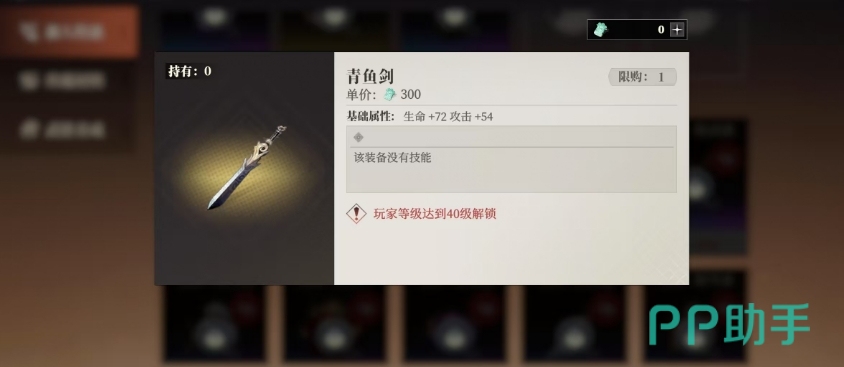 除了通过装备系统的挑战来获取武器之外,玩家还可以选择前往商店进行购买,不过商店购买武器也存在一定的限制条件,其中武器有着明确的等级限制,只有当武将达到武器所要求的相应等级时,玩家才具备购买该装备的资格,目前来看商店中可购买的武器最低要求武将达到40级,而且可供购买的数量相对较少,例如目前商店中可以购买的武器主要有剑以及刀等。