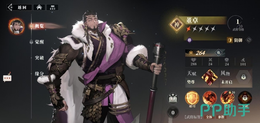 董卓的全体驱散技能是他最为擅长的防御手段之一,能够在关键时刻清除敌方施加的负面状态,为友方创造有利的战斗环境,同时他的物理攻击还具有强大的吸血效果,使得他在战斗中能够持续回复生命值,保命技能方面,当董卓受到伤害后,若他的生命比例首次降至85%以下,便会触发瞬间治疗至满血的状态,此外触发万里狼烟技能时,他还会额外提升自身30%的行动条,使得他在战斗中能够更频繁地释放技能。