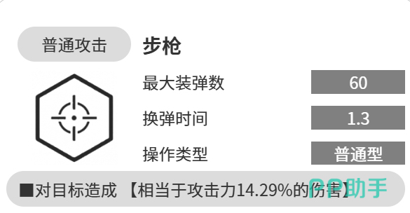 富克旺的普攻技能就是拿着步枪队敌人突突,能对敌人造成的伤害等于自身攻击力的14.29%,普通类型的操作在加上1.3秒的换弹时间,让富克旺的普通输出也有了不低的伤害。