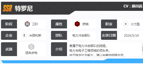 胜利女神新的希望特罗尼这一个角色会属于电力冲击部队,在电子还有电子工程领域,会拥有比较出色的能力,在部队中同样也是一个佼佼者。今天就为大家来详细的介绍一下,有哪一些主要的特点?