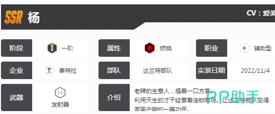 在战斗的时候,杨总是会手持发射器,换弹的时间为二秒,操作的类型就等同于蓄力型。在蓄力1.5秒之后全蓄力,伤害就可以直接达到350%,核心的伤害可以达到200%。在游戏中会拥有比较出色的优势,而且实力这方面也是很不错的,值得大家关注。