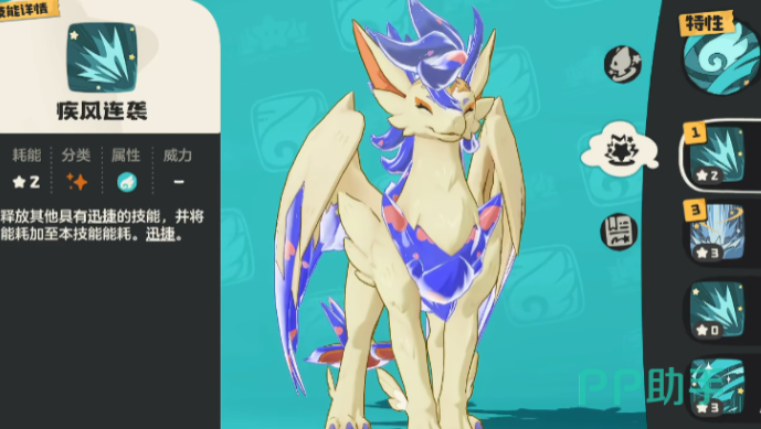 进化成最终形态之后,角色的体型会变得非常庞大,两边还会长出翅膀,精灵可以作为一个飞行坐骑带玩家快速穿梭,另外还能进入到空中飞行,这时候这个精灵也会拥有多个技能,首先一个技能就是热身运动可以让角色增加连击,另外还可以使用乘胜追击给对手带来伤害,同时还可以让角色的连击技能数加一,假如想提升自身的攻击能力,那就可以使用三鼓作气,这可以让角色的物理攻击直接提升30%。