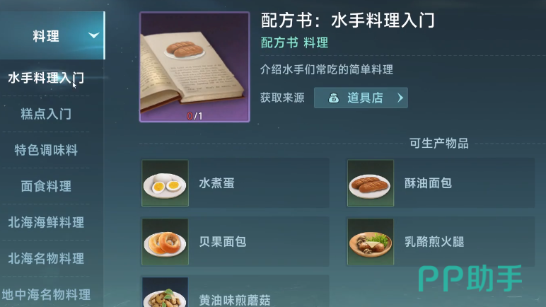 游戏中的料理入门还是非常重要的,可以生产许多的物品,大家可以通过不同的途径才可以更好的解锁这些生产的配方,如果玩家们想要获得水手料理入门以及糕点入门,可以先在出生地港口来进行购买,还有一些配方书也可以来相应的任务来进行获得,包括一些还是投资和海战等等内容都有机会获得这些配方书,之后就可以来进行料理烹饪了,制作大家喜欢的水煮蛋以及水果拼盘等等,会更加简单方便。