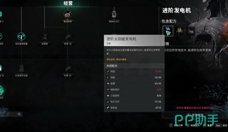 游戏中有多种发电机,太阳能发电机是前期较推荐的,是一种持久稳定的清洁能源,无需日常护理或充能,也不需要设置额外的引擎配置,只要安装在能接收阳光的地方,阳台上即可自动发电,但需要注意负载能力,并且每隔一段时间可能需要更换太阳能板以保证正常供电,风力发电机适合在山谷等风力充沛的地方建造,需要安装风力发电引擎,对于前期玩家来说资源消耗较大,使用时要将引擎装置放入发电机,保证电源及线路通行,尤其要确保接线器与控制开关之间的线路连接,然后通过控制开关来启动发电机。