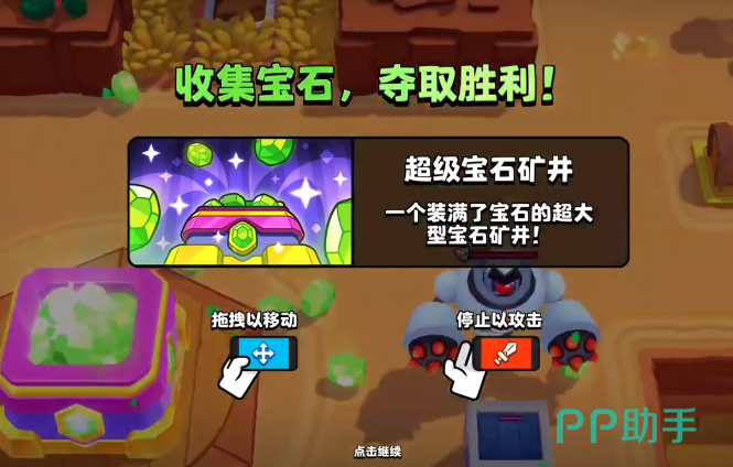 在这个游戏里玩家可以挑战的模式非常多,每种模式也都有着不同的设定和玩法,首先在游戏里最常规的就是宝石争夺战,这也是比较热门的一种游戏模式,游戏开始之后,玩家需要在游戏里不断去攻击野怪采集资源,然后用这些资源不断去招募更多的角色,需要和其他的成员,共同争夺游戏里的宝石,保持数量较多的队伍,在倒计时结束之后才能获得胜利。