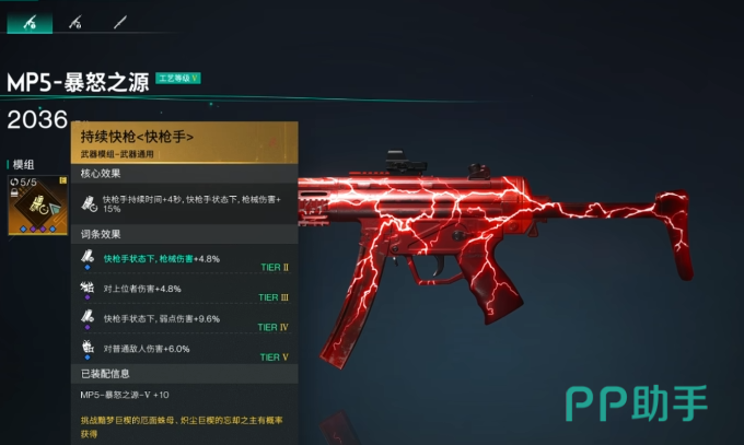 暴怒之源是一把具有特殊机制的冲锋枪,它带有快枪手效果,战斗中可以消耗生命继续射击,搭配快枪手层数的各项回血效果,同时生命值降低或是提升还可以增加枪械的伤害,基于这些特性,套装选择末土套装,可以提供伤害、伤害减免以及护盾,专属装备可以选择绿洲面罩和魔术师上衣,绿洲面罩可以增加快枪手效果,魔术师上衣可以在快枪手状态下增加更多输出,模组方面选择快枪手和暴击相关的内容,以更好地进行输出。