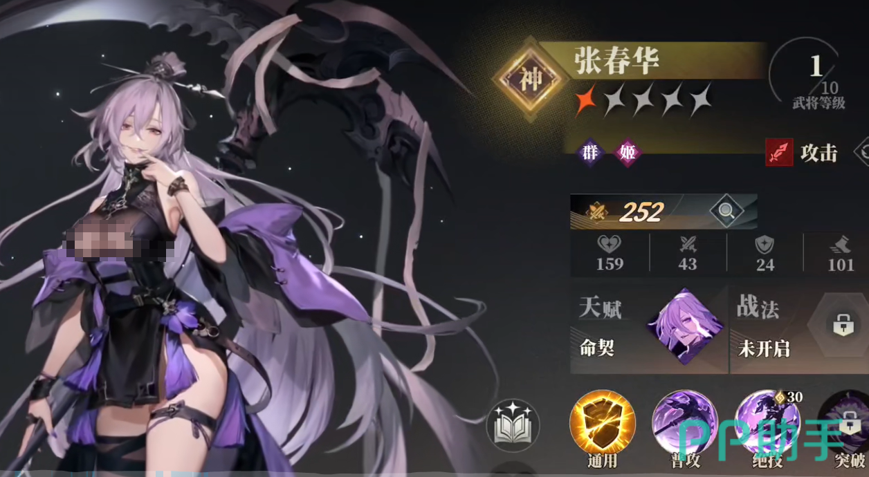 负责击杀与收尾的角色推荐张春华。她的绝技具备多段攻击机制,附带流血状态,专门针对残血单位,具备极强的清场能力。天赋加成后,她可以根据自身血量状况进一步增强输出能力,尤其在突破后获得的技能改动,能够显著缩短吟唱时间,使其更容易先手打出致命一击。此外,击杀目标后还能获取能量补充,提升整体节奏感。