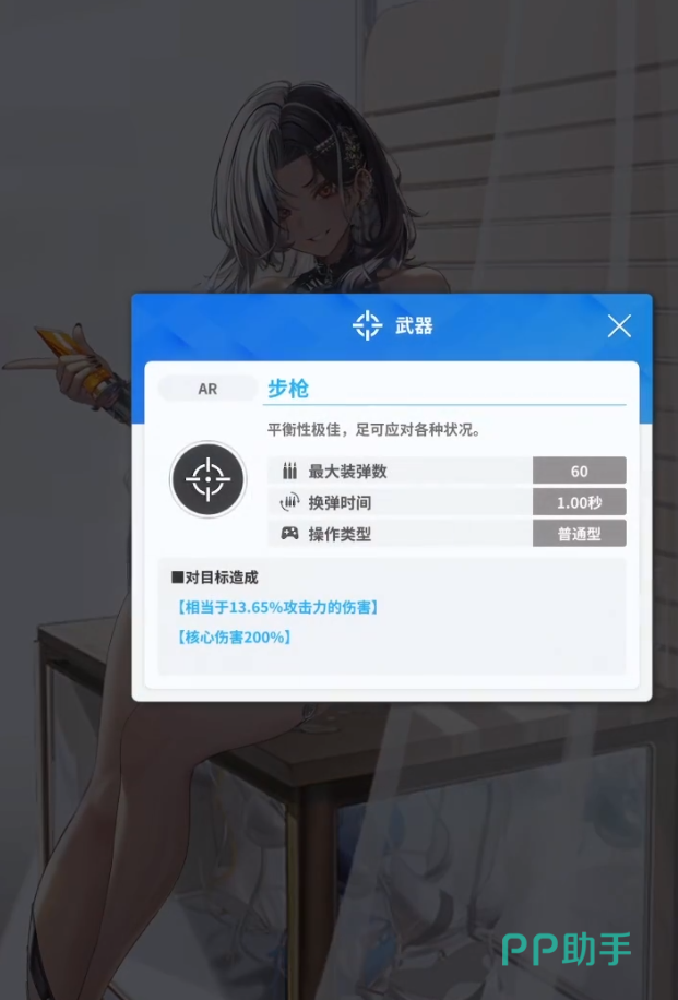 罗珊娜使用的步枪,最大装弹数为60,操作类型为普通型,换弹时间为1.00秒,武器名称是黄金士兵。每次普攻能对目标造成相当于13.65%攻击力的伤害,核心伤害为200%。虽然单次普攻伤害数值看似不高,但在持续输出过程中,也能为团队提供一定的伤害补充。