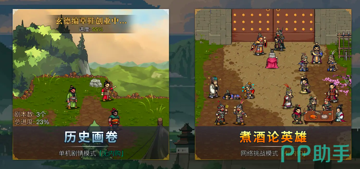 游戏目前能混了两大模式,分别是单机剧情模式和网络挑战模式,针对于平民玩家和氪金玩家完成了两种设定,让不同情况的玩家都可丝滑体验。但是在修改武将的方法上都同样简单易操作。在战斗过程中玩家需要提前进行排兵布阵,选择特定武将进行上场,且每名武将携带四种不同技能,要想对角色的技能进行修改切换,可直接点击屏幕,就会显示棋盘格画面。