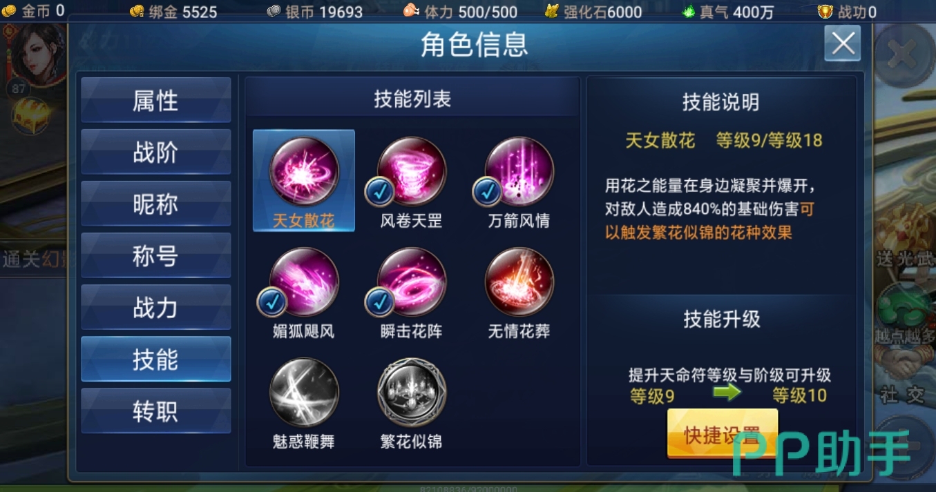 每个职业的最后一个技能可以用武功秘籍来解锁,小伙伴们可以在游戏商城中购买武功秘籍,还有些技能要求小伙伴们达到更高的等级并完成相应任务。另外技能升级也是小伙伴们不可忽视的一关,在天命符等级和阶级达到标准后,才可以升级相对应的角色技能。
