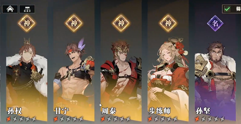 三国志幻想大陆2枭之歌吴国火烧队就是围绕着周瑜陆逊来构造的,上述这几位则是最优选,还有第六个补位的,根据关卡的类型来补充不同的武将,有的需要群攻的,有的需要可以切一排的或者一列,还有的可以上双治疗或者双盾,大家根据实战情况选择即可。当然,如果后续有孙策实装的话,这个位置也是有可能摆上他的。