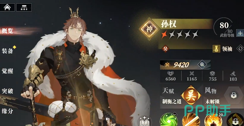 再一个人选择是“孙权”,他的通用技能里有禁疗,再加上天赋中“经略”效果,给队友全体拉条,绝技则是给队友减少消耗和提升,算是火烧队的加速器了,也是需要纳入队伍中的。