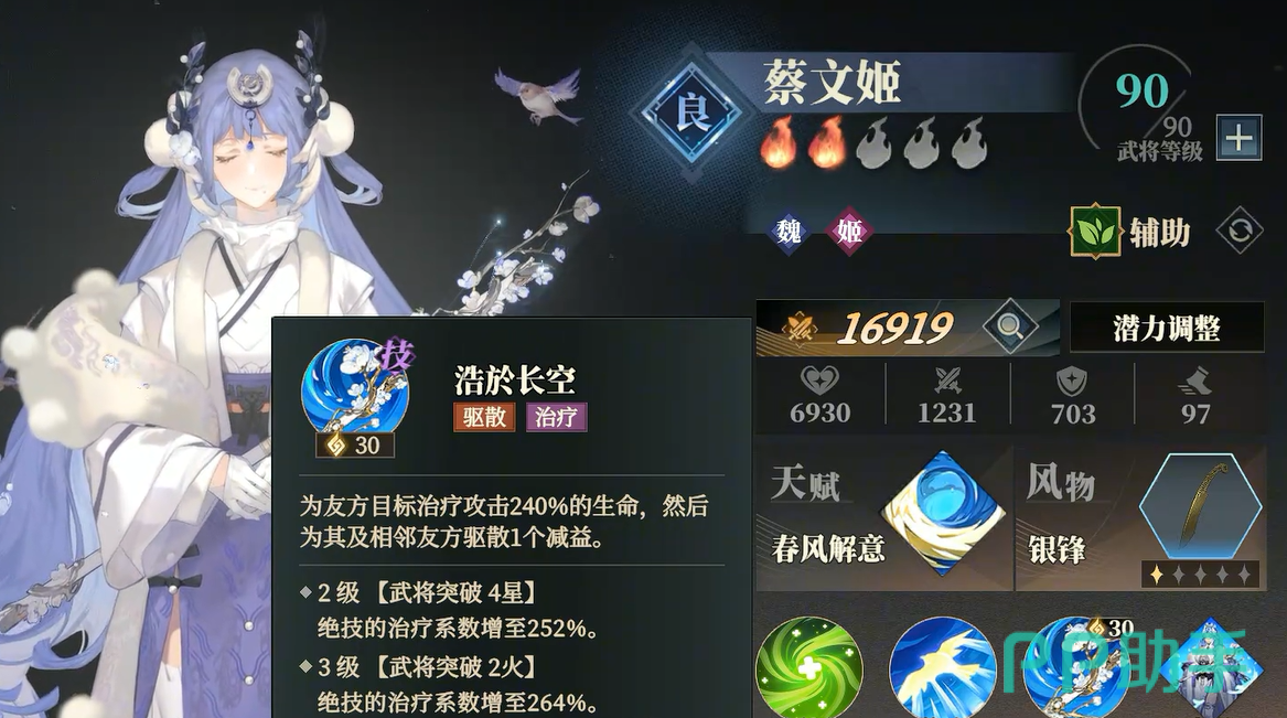 在辅将选择上,建议搭配系统赠送或易于获取的辅助与控制角色。蔡文姬作为新手“四小强”之一,其稳定的治疗与解控能力对于谋士队生存保障极为关键。而蓝色良将中的关银屏与乔菱,分别具备范围与单体的控制技能,同样是前期过渡的优质选择。