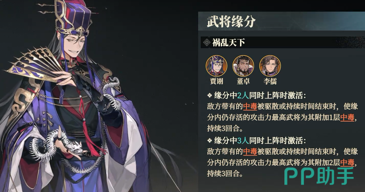 资源分配方面,建议前期集中提升贾诩与李儒,待三星后逐步扩展至董卓。此三人均为高适配度武将,不论是火毒核心队还是谋士泛用体系中均有位置,不易过时。此外,由于后期副本逐步提高对阵营与谋士标签的要求,火毒谋士队恰好能无缝适配40级兵械库、45级装备副本等内容,减少阵容更换与资源浪费。需要注意的是,目前游戏中部分技能或机制对“毒”状态具备清除与抵抗能力,若面对频繁驱散敌方,建议在阵容中通过提升火伤比重或增加控制链条,避免输出被削减。