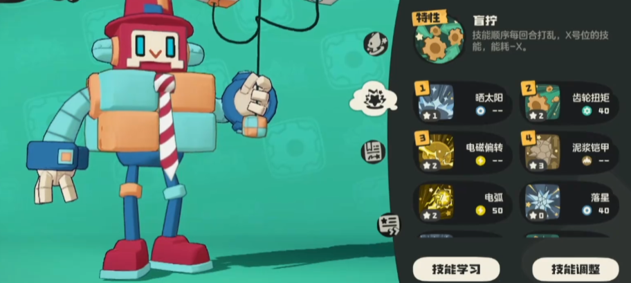 因为每个回合的技能都是打乱的,因此这只精灵自带的技能中除了“齿轮扭矩”外,基本都是没什么用的。但很多只看到了技能顺序混乱,其实更重要的一点是几号位的技能减几点能耗。