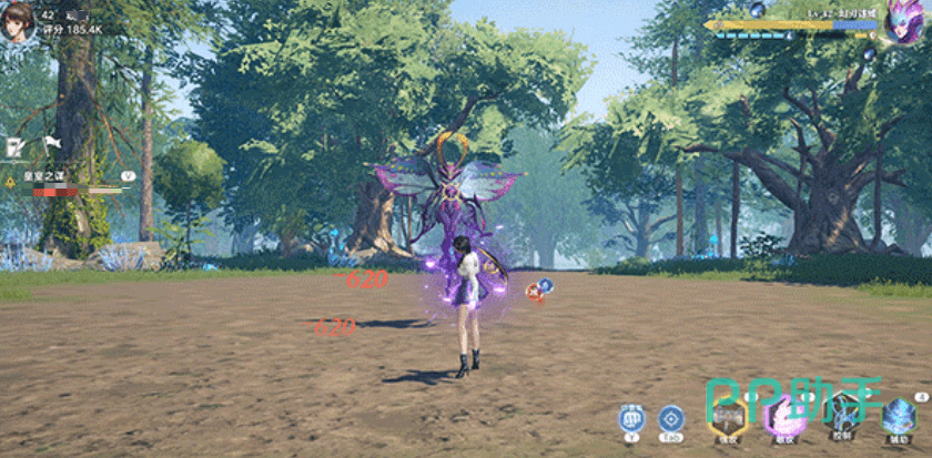 梦刃蝶后非常的灵活,它会在空中自由穿梭,从天空中攻击我们,普攻会使用它镰刀状的前肢进行攻击,第一个技能会向着玩家进行快速冲锋,大家可以通过向左右两边闪避来躲避这次伤害。
