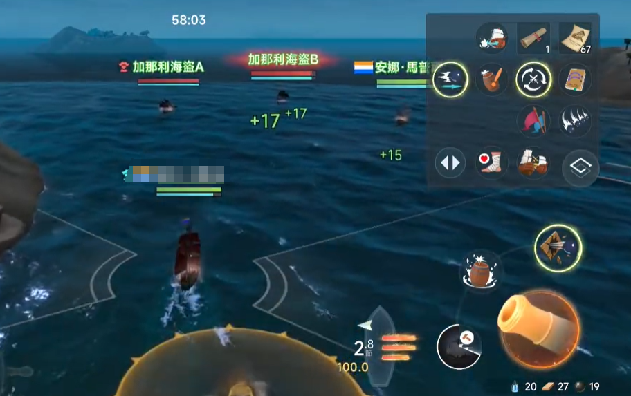 接着进入中心区域,这个区域同样也是两艘海盗船只,这两只船只的血量比较厚,不过好在附近会有其他国度的盟友相助,玩家们只需要在中距离使用炮弹或者枪械进行输出,这个距离是能保持全程无伤的,因为海盗船会攻击其他的盟友,好让玩家的船只方向输出。