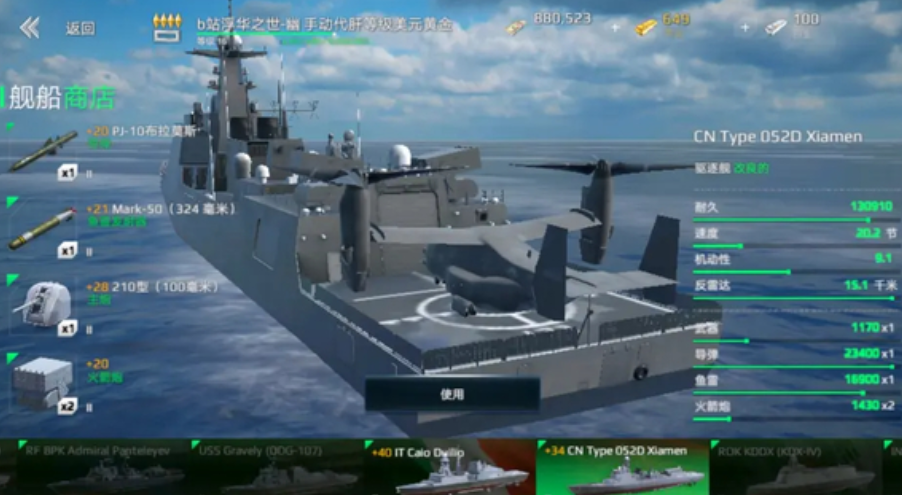 如果玩家已经解锁了三级战船,此时使用基洛夫或者是055型驱逐舰具备更多的优势,玩家在使用时一旦击穿对手的战舰,单局收益就可以达到15万美金以上,玩家不要选择二级战舰,因为二级战舰伤害性比较低,而且特别容易被攻击,建议直接跳过。