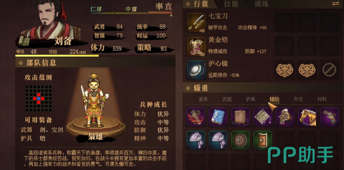 说到转职,首先不得不提的就是刘备。作为游戏的主角,他的成长路线通常会受到大家的关注。刘备的转职选择并不复杂,基本上是朝着“群雄”这个方向发展。作为一个需要高生存能力的角色,刘备的装备选择可以偏向防御性,剑盾组合搭配既能提高他的防御,又能增强他的输出能力。而如果你手上有铁鞭,那也是一个不错的替代选择,可以适当提高攻击力。加上他本身的技能加成,配合队友的暴击支持,让刘备成为战场上的坚强后盾。