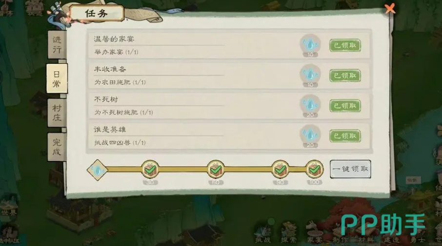 之后就可以建筑伐木场以及采石场,保证自己的资源,还可以来解锁工坊以及医馆,还有学堂等等,治疗疾病和提升自己的技能,游戏中的村民管理也是非常重要的,大家需要根据每一个村民的天赋以及技能,然后来分工提高自己的效率,之后就需要通过学堂来提高他们的技能,加快生产的效率,游戏中的任务也是非常重要的,可以优先完成主线的任务来解锁更多的奖励之后再完成一些支线的任务。