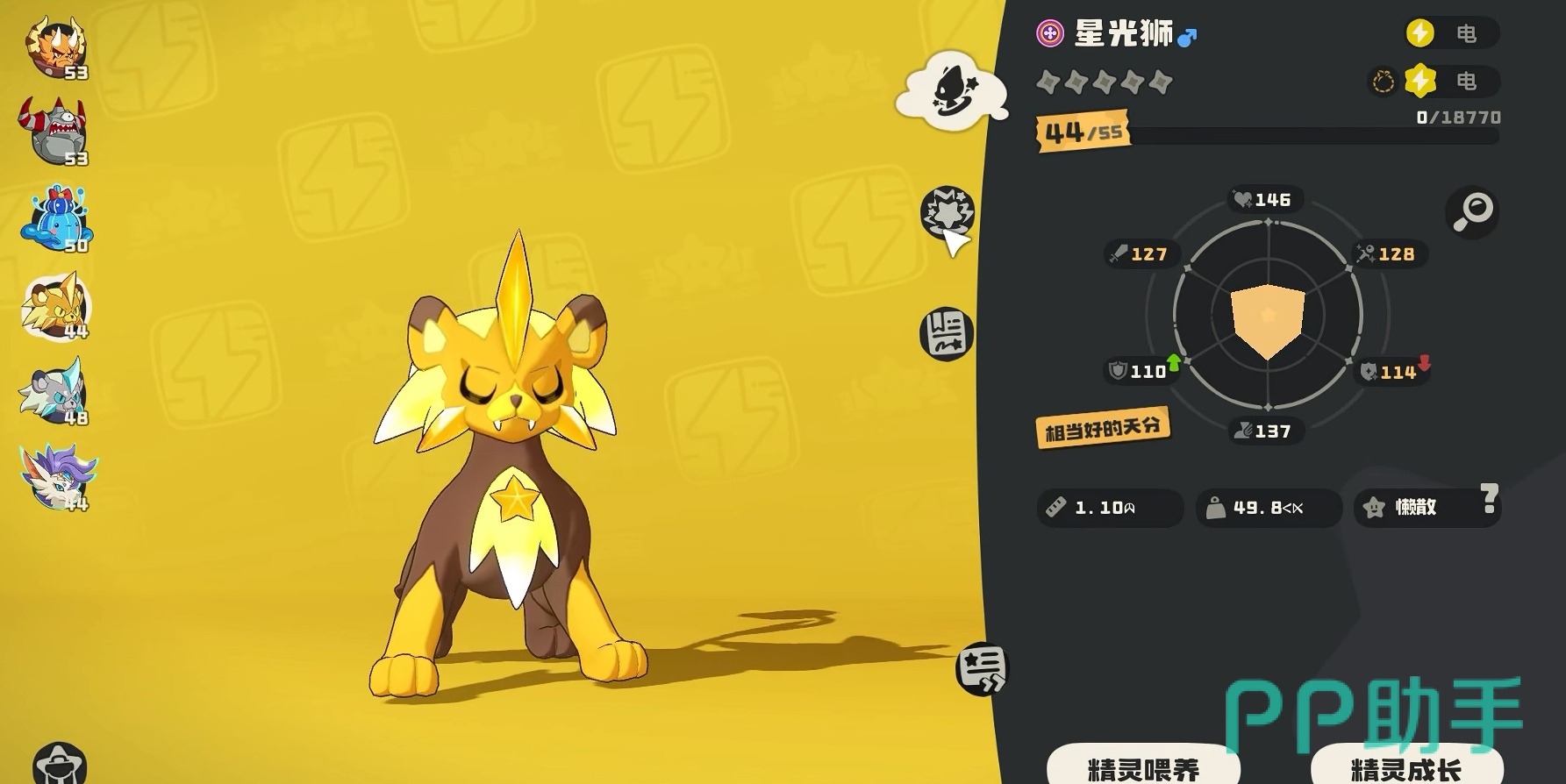 推荐一:星光狮,这是电系宠物中非常强劲的一位,它拥有着霸气的外形以及出色的实力,其主要的攻击手段是由头顶的水晶来施展的,这只宠物的初始面板值相对一般,但是随着等级的提升,它的成长上限是很高的,而且它所具备的电流刺激特性会跟随玩家所携带的光系宠物数量来延长时间。星光狮是擅长魔法攻击的,在前期时,玩家可以使用它的【电弧】技能去进行先手攻击,第一回合就能够增加50点的威力值,后期凭借【引雷】这一技能可以直接造成双重伤害,十分厉害。