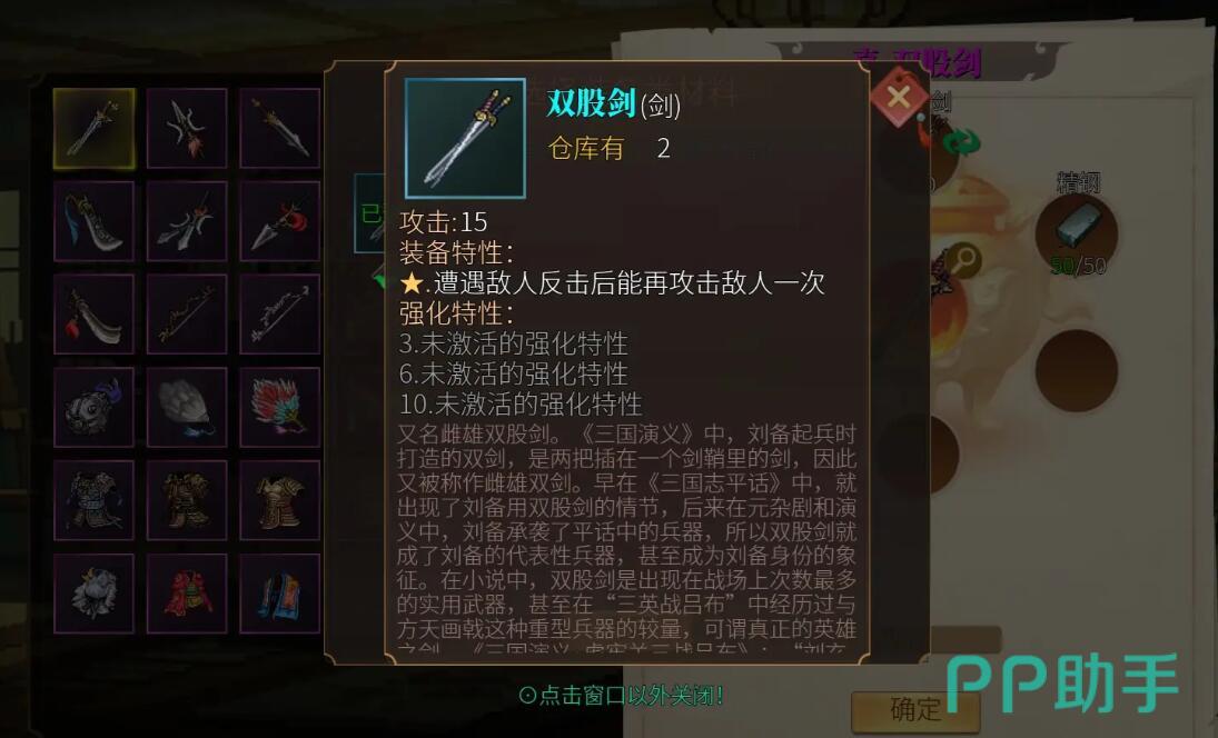主力输出型武将需优先匹配专属武器。关羽转职后,装备青龙偃月刀可激活暴击伤害+15%”的锻造特性,配合刘备的群体暴击增益,能在BOSS战中实现单回合爆发,当然也可以装备类似双股剑这种非常不错的特殊装备,装备之后能在反击中额外攻击一次,可以说是战坦都非常不错的匹配装备。