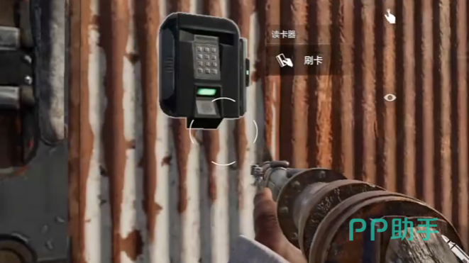 这里面有不少箱子,把箱子捡完后操作一下面前的电路盒获得蓝卡,成功后出门左拐,一直沿着楼梯的下方走,再爬上一边的小楼梯,上去后左边就能看到蓝卡房,直接刷卡里面能拿到不少军火箱和红卡。
