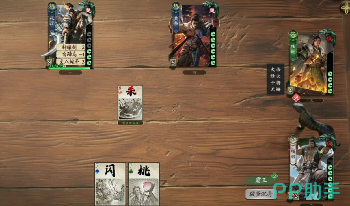 如果敌人这边也有项羽角色,双方需要协商,并且要增加策略深度,毕竟霸王这个被动技能可以造成三次伤害,额外还能够获得一张阵前对决,这样能够对目标直接造成伤害,建议玩家在选择霸王时也需要给角色进行定位。