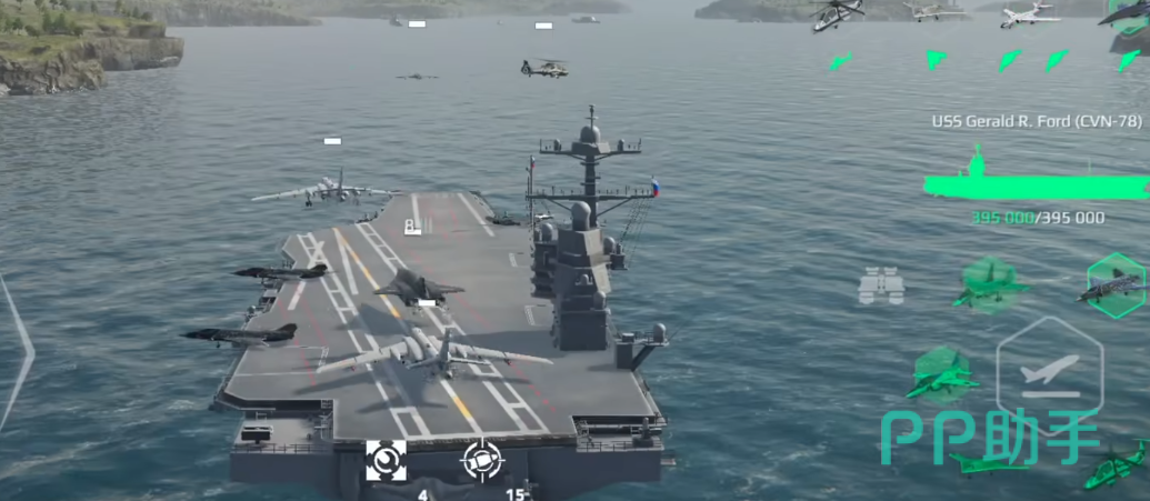 与其他舰船不同,航母并不以主炮火力作为输出手段,而是依赖搭载的舰载机完成攻击、防御、干扰和侦察等多种战术任务。现代战舰里航母主要包含以下几个模块:舰载机系统:每艘航母可以搭载一定数量的战斗机、攻击机或多用途无人机,不同种类的飞机承担不同功能。自动起降与攻击逻辑:舰载机会自动出击攻击敌方单位,根据目标类型优先级、距离以及敌我威胁自动决定攻击次序,当然也可以手动接管控制非舰载机攻击。