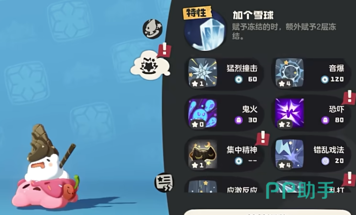 之后是第二个需要携带的技能,这技能叫做碎碎冰,这技能拥有造成魔法伤害以后给到一层冻结效果然后加20技能威力的效果,这是它的核心技能,不仅可以不断提升伤害,还可以去累积冻结层数。