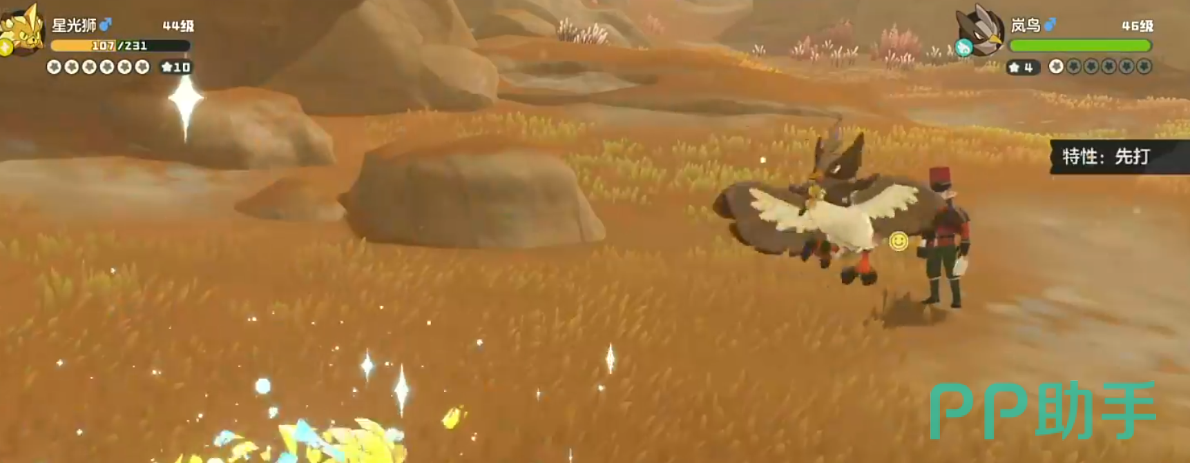 和梅尔对话后就会开启第一场战斗,他派出的精灵为翼属性的岚鸟,这样建议可以上电系的比方说电光狮上场对战,电系能直接克制翼系,使用一发二星的电系技电子火花就能直接一招带走。