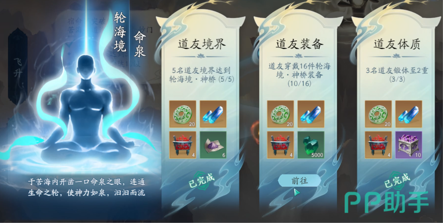 当大家刚刚踏入修仙的道路时,便处于轮海境界;然后轮海又有四个小境界,分别对应着苦海、命泉、神桥,最后才可登峰造极,并达到理想中的彼岸境界。不过若是想要更进一步的话,就需要进行突破了,这时也算是一个小高手了。