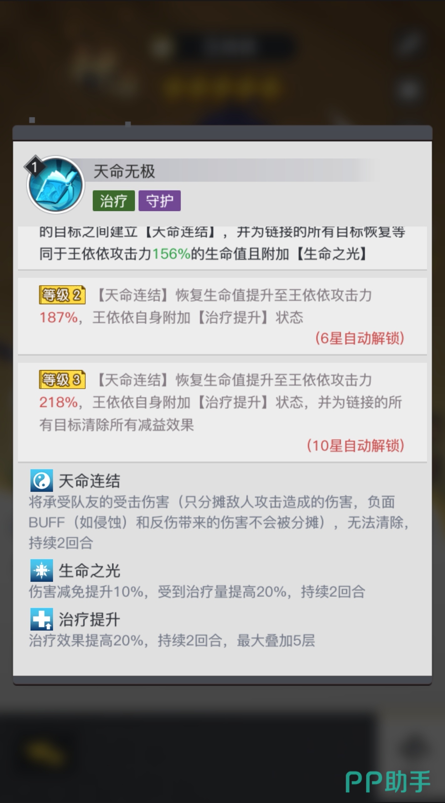 对于资源有限的玩家,王依依在低星级时已能发挥基础功能,但高星级后的质变效果更为明显。例如,五星解锁的天命无极,可在释放治疗技能时为队友附加持续回血效果。此外,她的装备词条推荐选择生命加成、治疗效果提升或抗暴击,避免过度追求输出属性而削弱核心功能。