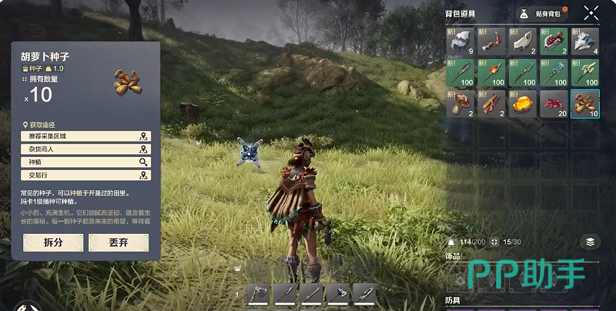 种植可以通过探索采集获得,比如采集胡萝卜就会掉落胡萝卜的种子,采集溜溜果就会掉溜溜果的种子,在获取了种子之后,可以点击查看附近的采集区域;种子也能直接在库拉恩岛的杂货商人这里去购买,通过传送台能快速前往。