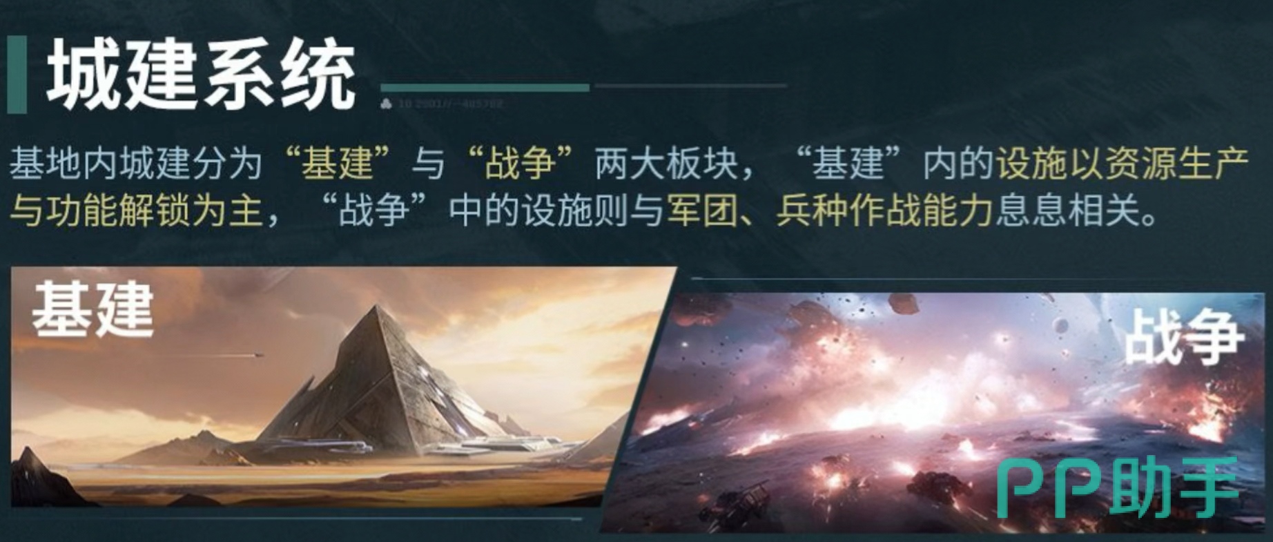 游戏中提供给玩家的兵种架构有三系七型,不同兵种具有不同的特性、优势和劣势,以“飓风战甲”这一兵种为例子,它们在面对能量武器的时候自带25%的天然抗性。玩家需根据兵种的特点进行搭配组合,同时培养英雄,让不同的英雄组合成一个强大的战术体系。在城建系统中有很多功能性建筑,具体是分为城市与基建两部分的,小伙伴们如果想要自己的队伍更加壮大,那么就要去注重城建规划,根据自己的发展战略来选择,这会影响到部队的成长方向。