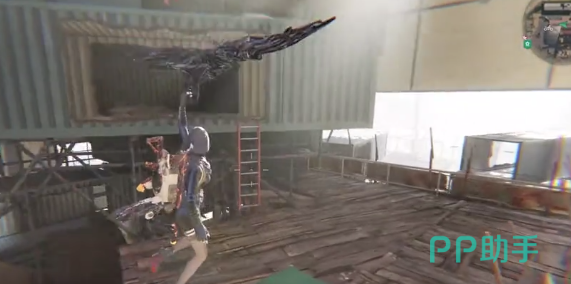 玩家可以从楼顶的缺口下来,直接绕到仓库的对面,在货架下面还可以找到第4个装备箱。接着朝南的光柱走过去,如果没有提示权限互动,则意味主线还没有推进。在描完锚点之后可以进入到白色大仓,走上2楼之后拿到最后一个武器箱。
