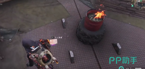 玩家进入到波光镇,直接骑着摩托车进门,进门之后左转,可以来到大仓库门口。靠左手边就有一个向上的楼梯,很快就能进入到船的平台。在油桶的边上就可以看到南瓜泥沙拉。在这个过程中还会遇到秃鹫,将其打败就可以获得1号武器箱。