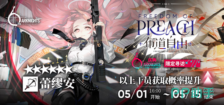 明日方舟六周年庆典即将拉开帷幕!作为本次庆典活动的亮点之一,限定寻访——【布道自由】将带来一波充满惊喜的干员池。今天小编就带来明日方舟六周年限定干员介绍。这个活动不仅迎来了全新的限定干员“新约能天使”,还将有老面孔回归,甚至是一些实用的干员兑换选项,让人眼花缭乱。准备好了吗?让我们来一探究竟。