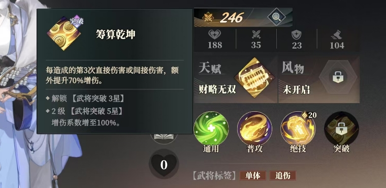 或者可以围绕多段攻击来触发追击效果,搭配连击型武将如赵云、马超等,通过他们高频的攻击次数来激活丁夏突破技筹算乾坤的增伤效果,这个效果每3 次伤害可提供70%-100%增伤,在面对敌方群体时能够打出可观的伤害总量,实现以量取胜,同时前排推荐选用护盾型坦克如典韦、夏侯惇,他们能够在前方承受大量伤害,与丁夏的复苏技能相互配合,形成双重防护体系,确保队伍在前排稳固的情况下持续输出。