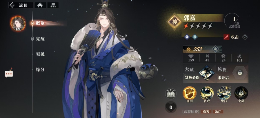 由于张辽在队伍中已经承担了核心输出的重任,所以阵容当中就不再推荐选择放曹操了,这里最后一个位置自然而然地留给了郭嘉,郭嘉的能力全面且独特,他具备整列攻击和整列治疗的特点,在战斗中既可以对敌方一列造成可观的法术伤害,并能驱散敌方增益效果,对面的战斗节奏也会因此混乱起来,又能够为对应的友方一列提供及时的治疗,这样搭配的话整体的战斗强度与续航能力都是有的。