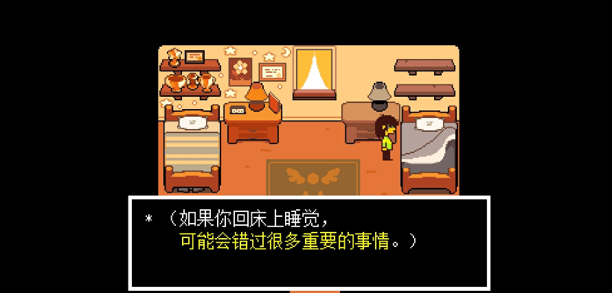 跳过起床剧情:持续睡觉可以跳过学校剧情,直接进入暗世界,获得手环护腕(按 C 键可加速对话)。