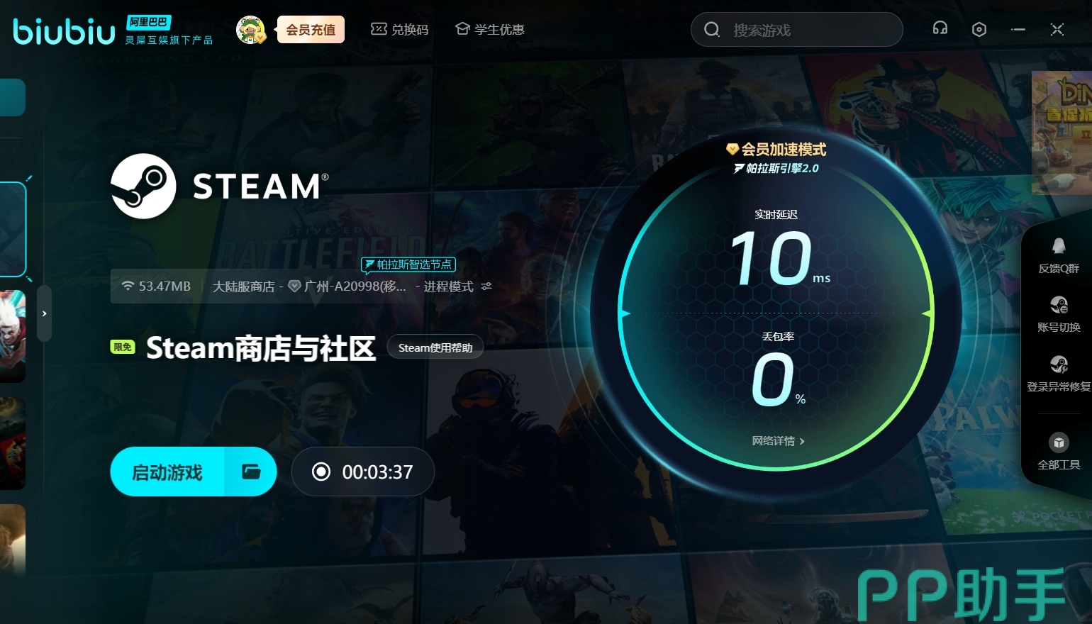 biubiu加速器搭载帕拉斯引擎2.0,针对游戏网络痛点进行全面革新,凭借四大“黑科技”,为玩家带来极致的加速体验: