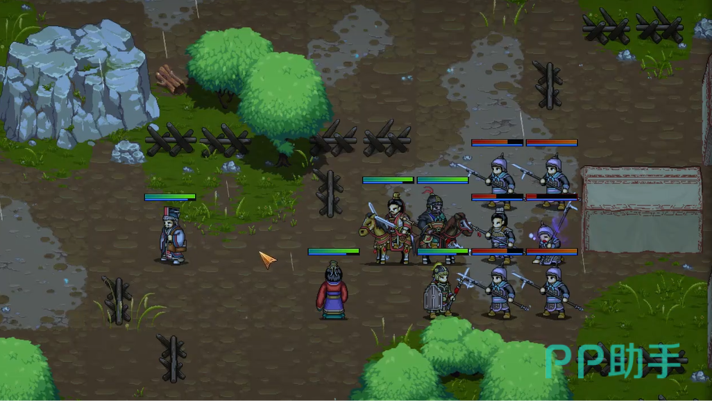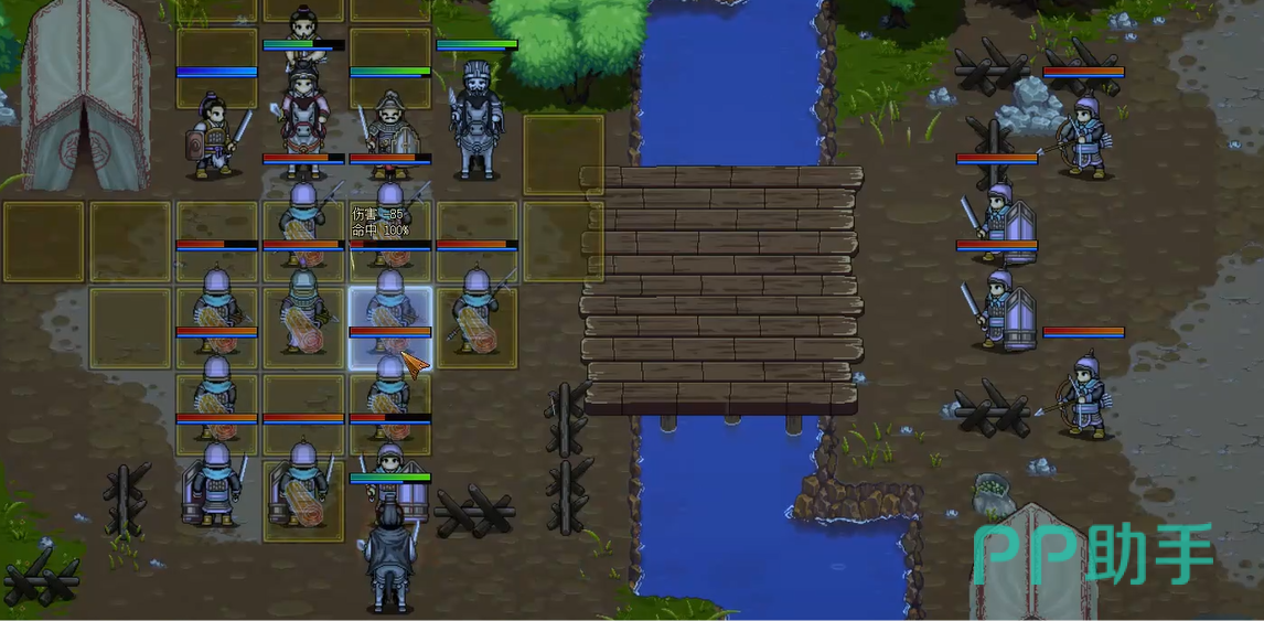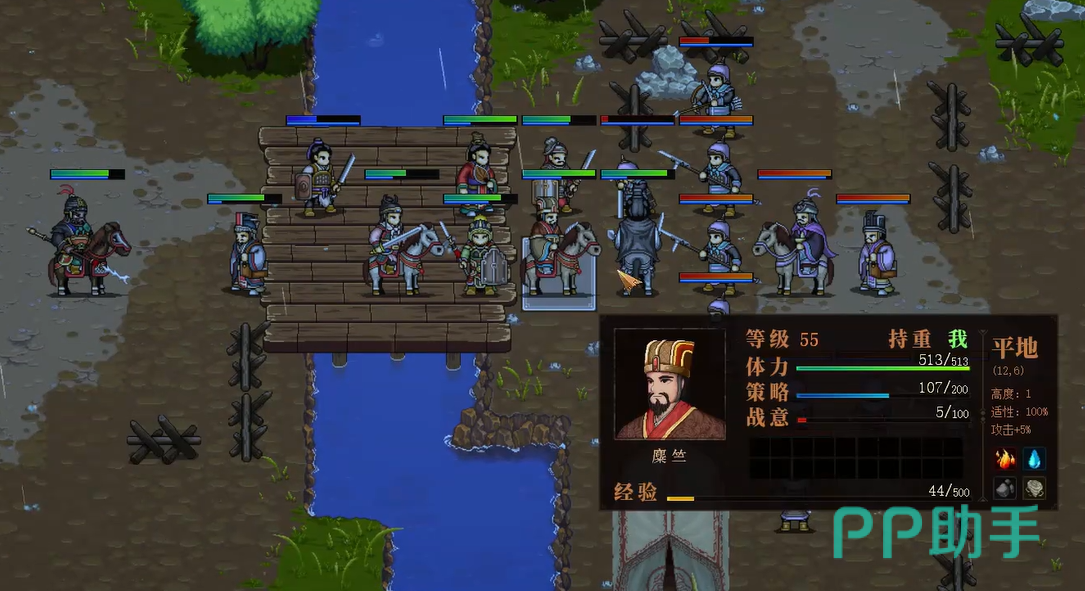 接着大家解决完先遣军之后,就可以成功来到上面并与其他角色汇合了,然后还会来到桥上进行对战。这时可以派遣刘备上前攻击,然后让辅助为他加血加防御。之后糜竺和刘琰就用技能进行范围性攻击,还可减少敌方攻击,最后再慢慢磨血量,将所有对手消灭即可。