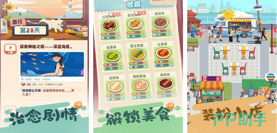 和好友并肩踏上浪漫征途,在这个过程中,要巧妙合成各类食材,精心串制美味串串,逐步解锁丰富多样的菜谱,每一步操作都洋溢着欢乐与未知的挑战。还有造型精致、萌趣十足的装饰物,宛如旅途中的灵动点缀,为这场旅程增添别样风情。而来自天南地北的朋友,更似璀璨繁星,汇聚成温暖的光芒,照亮整个旅程。