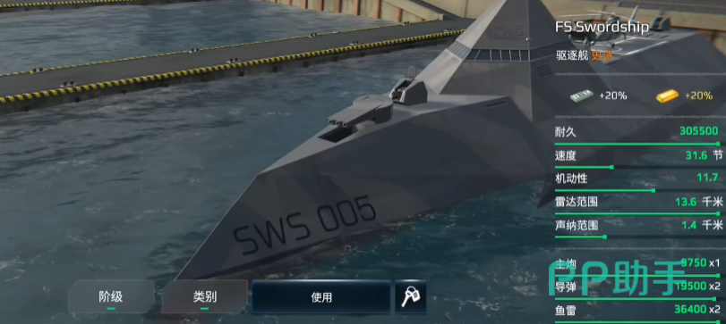 作为一艘法系驱逐舰,最大的特点是锁定电磁炮和SWS多管火箭系统,机动性出色,特别擅长躲避高速导弹,比如东风系列导弹。而对于速度慢、能拐弯的布拉瓦类导弹,则需要更高的操作精度。剑船也配备了两门鱼雷,不过因为是两个独立槽位,使用手感略微有些奇怪,但整体表现依然不错。